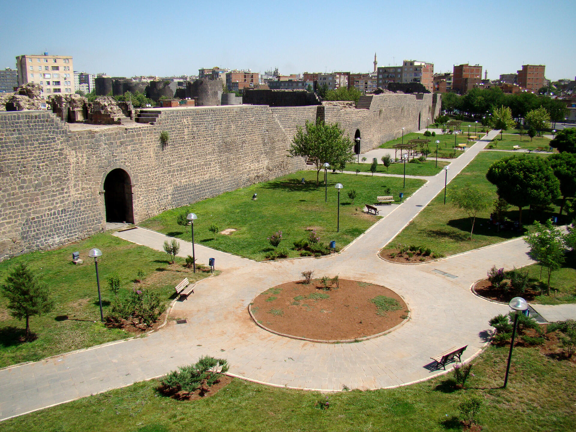 Located on an escarpment of the Upper Tigris River Basin that is part of the so-called Fertile Crescent, the fortified city of Diyarbakır and the landscape around has been an important centre since the Hellenistic period, through the Roman, Sassanid, Byzantine, Islamic and Ottoman times to the present. The site encompasses the Inner castle, known as İçkale and including the Amida Mound, and the 5.8 km-long city walls of Diyarbakır with their numerous towers, gates, buttresses, and 63 inscriptions. The site also includes the Hevsel Gardens, a green link between the city and the Tigris that supplied the city with food and water, the Anzele water source and the Ten-Eyed Bridge.