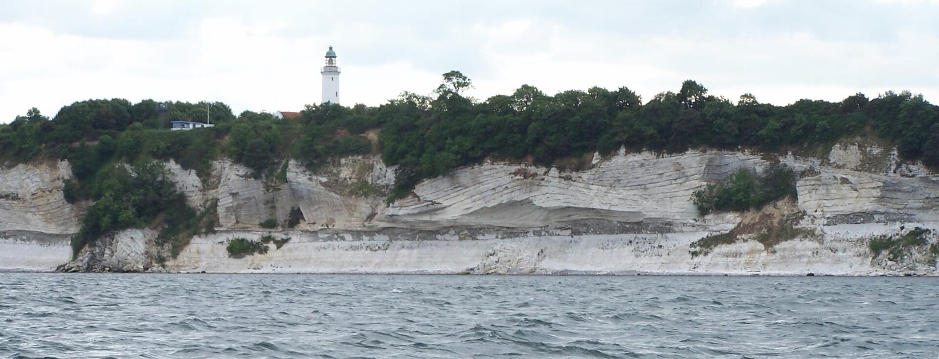 Stevns Klint, known as the Cliffs of Stevns in English, is a white chalk cliff located some 6 km (3.7 mi) southeast of Store Heddinge on the Danish island of Zealand. Stretching 17 km (11 mi) along the coast, it is of geological importance as one of the best exposed Cretaceous-Tertiary (K/T) boundaries in the world. Subject to frequent erosion, the cliff rises to a height of up to 40 m (130 ft). Because of its exceptional fossil record, Stevns Klint was inscribed on the UNESCO World Heritage List in 2014.Additional Site Details